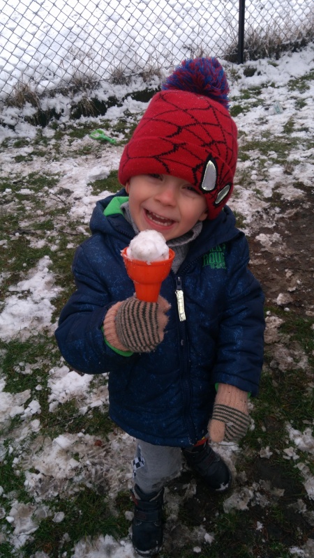 Na śniegu zawsze jest wesoło i radośnie. Z czerwonymi noskami i z uśmiechem wracamy do przedszkola na ciepły posiłek.
