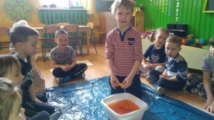 Tematy zabaw edukacyjno-sensorycznych ukazanych na zdjęciach: